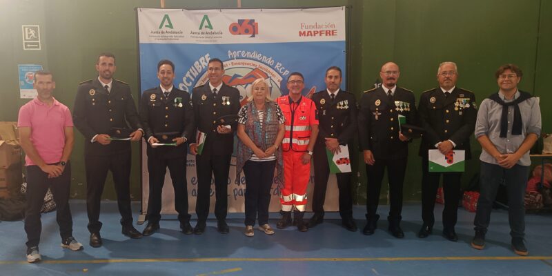 Durante la jornada en Huelva, la delegada territorial de Salud y Consumo, Manuela Caro, y el director provincial del 061, Juan Chaves, han hecho entrega de reconocimientos a seis agentes de la Policía Local de Isla Cristina que, gracias a su rápida actuación aplicando maniobras de reanimación, contribuyeron a salvar la vida de un paciente. Estos distintivos simbolizan la importancia de la respuesta ciudadana inmediata en casos de parada cardiorrespiratoria, considerada la emergencia sanitaria tiempo-dependiente por excelencia.