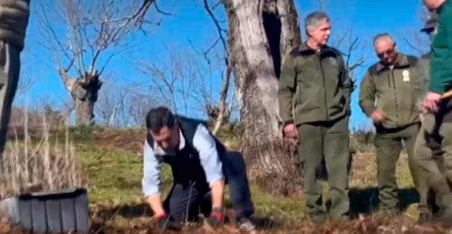 El presidente de la Junta de Andalucía, Juanma Moreno, ha visitado hoy a las 12 de la mañana las fincas de castañares Riscos Altos y La Solana en Castaño del Robledo.