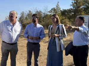 El presidente y el gerente de la Mancomunidad de Desarrollo Condado de Huelva, Paco Pérez y Adrián Moreno, junto con la alcaldesa de Palos de la Frontera, Milagros Romero, han visitado el Paseo de la Calzadilla, donde ya han comenzado las obras incluidas en el Plan de Sostenibilidad Turística en Destino (PSTD) Litoral-Condado de Huelva.