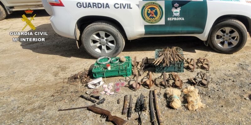 La Guardia Civil, ha intervenido un total de 142 medios de captura de animales prohibidos y no selectivos (cepos, lazos, perchas y redes abatibles) que estaban en posesión de un trabajador de una finca agrícola.