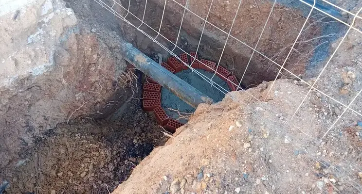 Se trata de una línea de impulsión que discurre por la parte trasera de las viviendas que afecta a varias de estas, dado que dicha tubería municipal discurre bajo parte del patio y muro trasero.